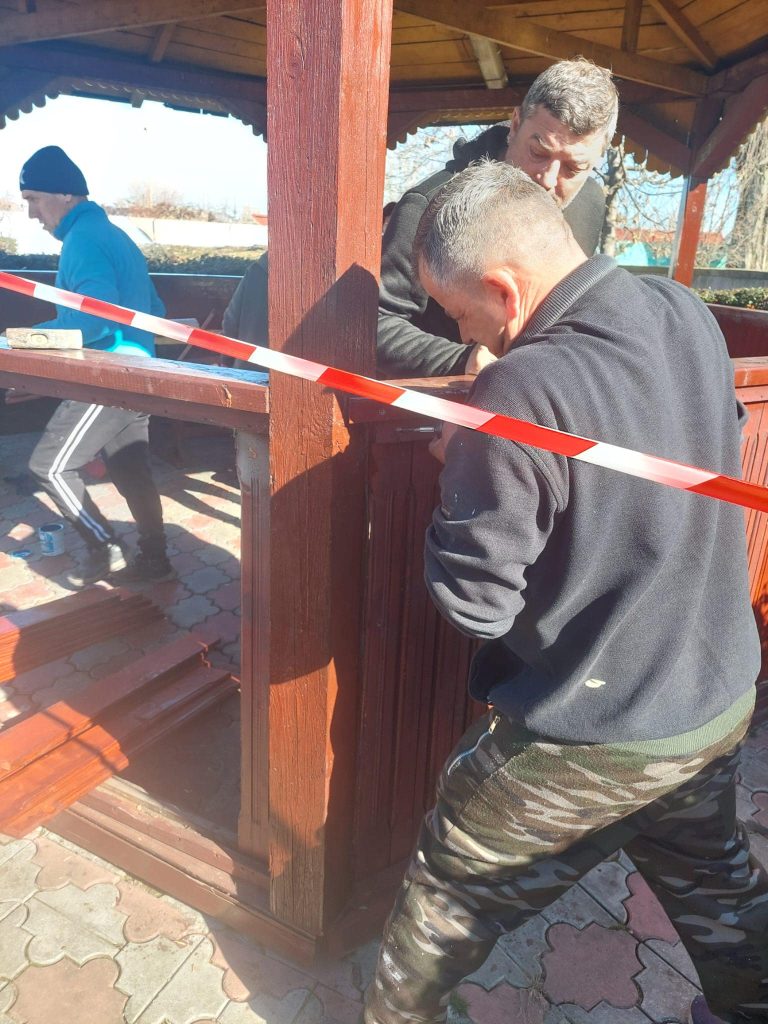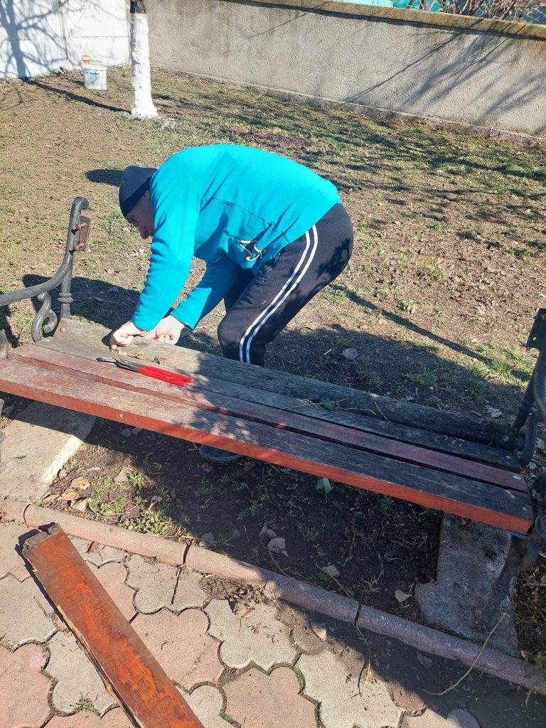 Reparații și curățenie în parcul din fața liceului „Goga Ionescu”.